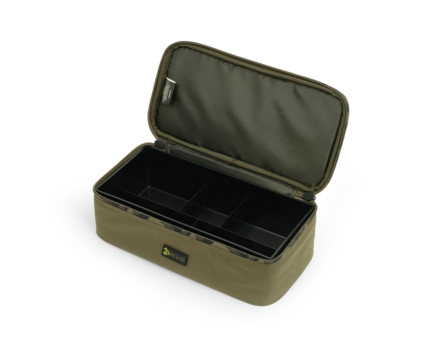 Tasca organizer per attrezzatura, perfetta per riporre una varietà di articoli, tra cui terminali, PVA, piombi e piccole tavolette per terminali. Fornita con un vassoio in plastica stampata per un’organizzazione efficiente dei terminali. Realizzata in resistente tessuto Oxford 600D impermeabile con robuste cerniere da 10 mm e dettagli mimetici Avid. Composizione del tessuto: Esterno: 100% poliestere | Fodera: 100% poliestere | Imbottitura: 40% poliuretano / 60% polietilene. Dimensioni (cm): A10 x L35 x P17.