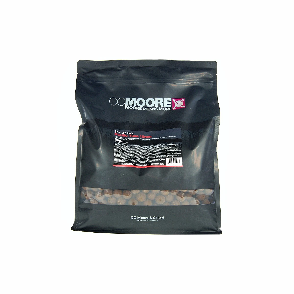 Dopo ben 3 anni di lavoro, CCMoore ha creato queste nuove boilies. Le Pacific Tuna sono boilies naturali, di colore rosso scuro intenso, che combinano le proteine solubili del pesce, quelle del latte e le proteine vegetali, il tutto insieme a potenti stimolatori d’appetito. Il risultato è una performante boilies all season, grazie all’elevata solubilità e digeribilità anche in acque fredde. Sono caratterizzate da una buona durata in acqua, e grazie all’alto contenuto di aminoacidi e di proteine di alta qualità interagiscono rapidamente con l’acqua dello spot. Contengono l’ormai famoso Robin Red di Haith’s, derivati del tonno e di molluschi lavorati a basse temperature, ed estratti vegetali.