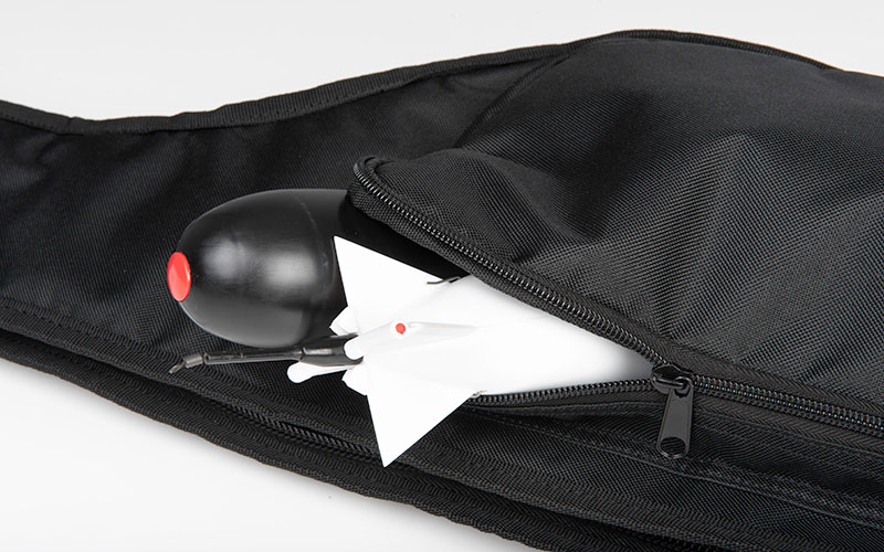 • In grado di ospitare due canne da 13ft (3.9m)assemblate con mulinelli big pit