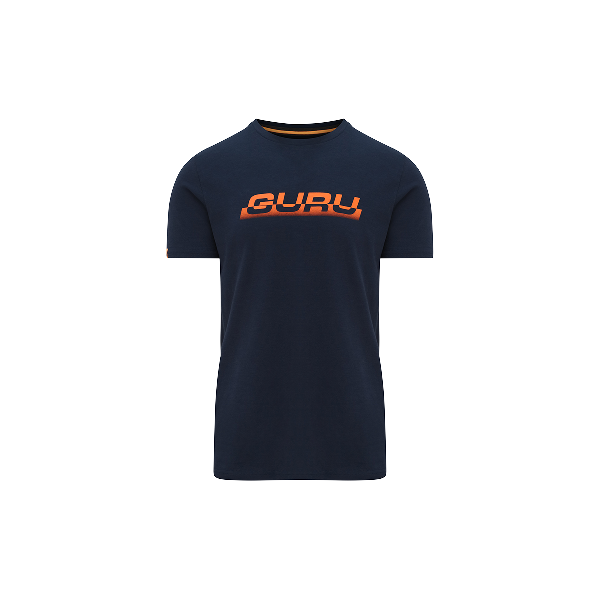 Una t-shirt leggera color blu navy a maniche corte, con una intersezione grafica Guru sul davanti e una grande grafica blu Guru sul retro.