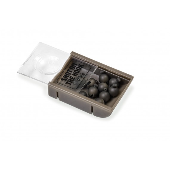 Il Shot on the Hook è disponibile in tre misure; 0,30 g, 0,40 g e 0,50 g e sono forniti in un comodo scomparto con coperchio scorrevole per conservarli in modo sicuro nella tua cassetta degli attrezzi, con dieci pallini per confezione.