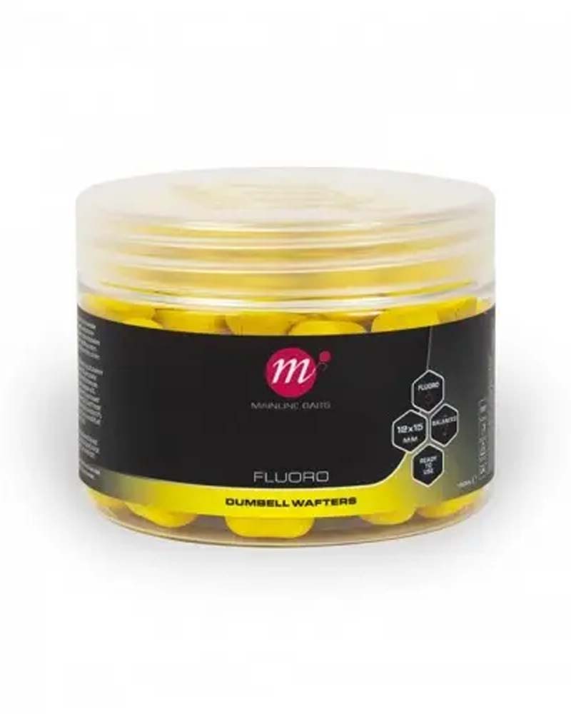 I Boilies Cell Fluoro Dumbell Wafters realizzati da Mainline sono inneschi super luminosi e progettati per una presentazione di inneschi bilanciata.