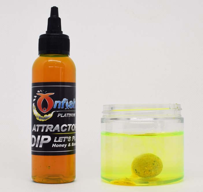Per rendere ancora più irresistibili i vostri inneschi abbiamo realizzato la linea di attractor dip. Un dip liquido a base di glicerolo a media densità di colore giallo fluo per aumentarne la visibilità in cui sono disciolti un insieme di aminoacidi e dolcificante talin. Una volta in acqua il dip rimarrà sulla boilies rilasciando lentamente gli aminoacidi più pesanti nella zona di pesca e permettendo a quelli più solubili di essere trasportati a diverse profondità e distanze, creando una “nuvola” irresistibile. Soluzione pva friendly.