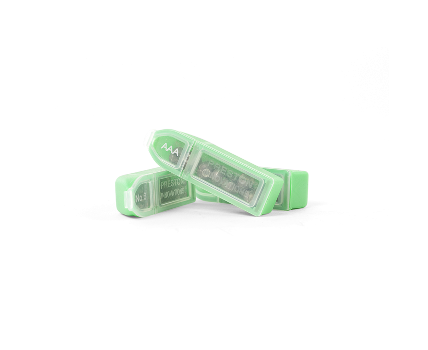 I pallini Preston Non-Toxic sono realizzati in una lega morbida e densa, accuratamente calibrata per garantire un peso uniforme. Le scanalature sono progettate per essere chiuse con una leggera pressione delle dita e una speciale rientranza nella parte superiore della scanalatura consente di aprirle facilmente con l’unghia.