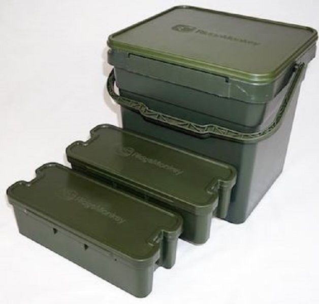 – Due contenitori più piccoli ad incastro utili per contenere pellet, accessori e/o la minuteria (come forbici, pinze, pva, ago infila-boiles, ami, etc..), i quali possono       essere agevolmente disposti sui due lati lughi del secchio centrale e possono a essere posizionati indifferentemente all’interno ed all’esterno di quest’ultimo, al fine di ridurre l’attrezzatura al minimo ingombrodurante il trasporto ed avere tutto a portata durante la sessione di pesca.