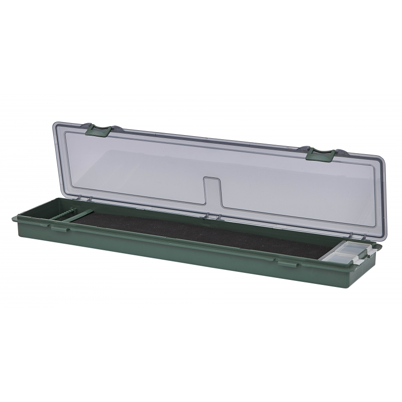 Porta terminali rigido dall’ottimo rapporto qualità-prezzo con asta di ancoraggio per gli ami e sistema in spugna con spilli per bloccare il terminale stesso. Dimensioni: 34 cm x 9 cm.